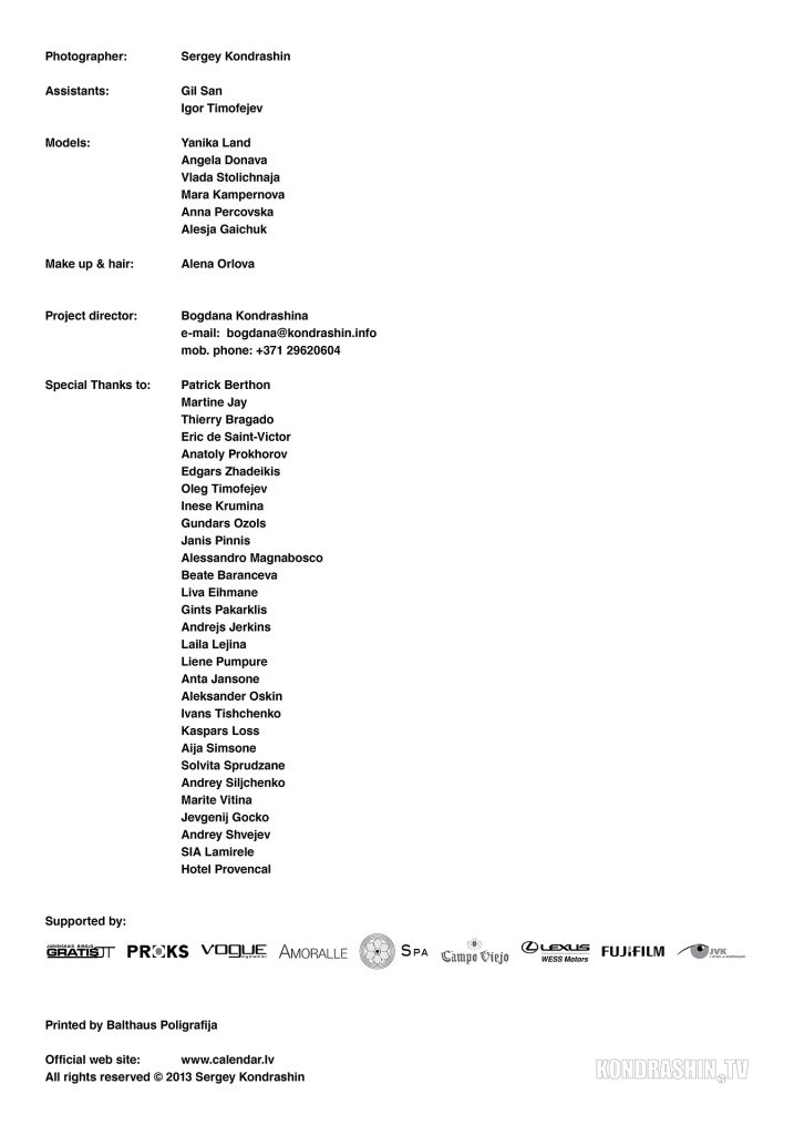 Special Thanks to: Patrick Berthon Martine Jay Thierry Bragado Eric de Saint-Victor Anatoly Prokhorov Edgars Zhadeikis Oleg Timofejev Inese Krumina Gundars Ozols Janis Pinnis Alessandro Magnabosco Beate Baranceva Liva Eihmane Gints Pakarklis Andrejs Jerkins Laila Lejina Liene Pumpure Anta Jansone Aleksander Oskin Ivans Tishchenko Kaspars Loss Aija Simsone Solvita Sprudzane Andrey Siljchenko Marite Vitina Jevgenij Gocko Andrey Shvejev SIA Lamirele Hotel Provencal