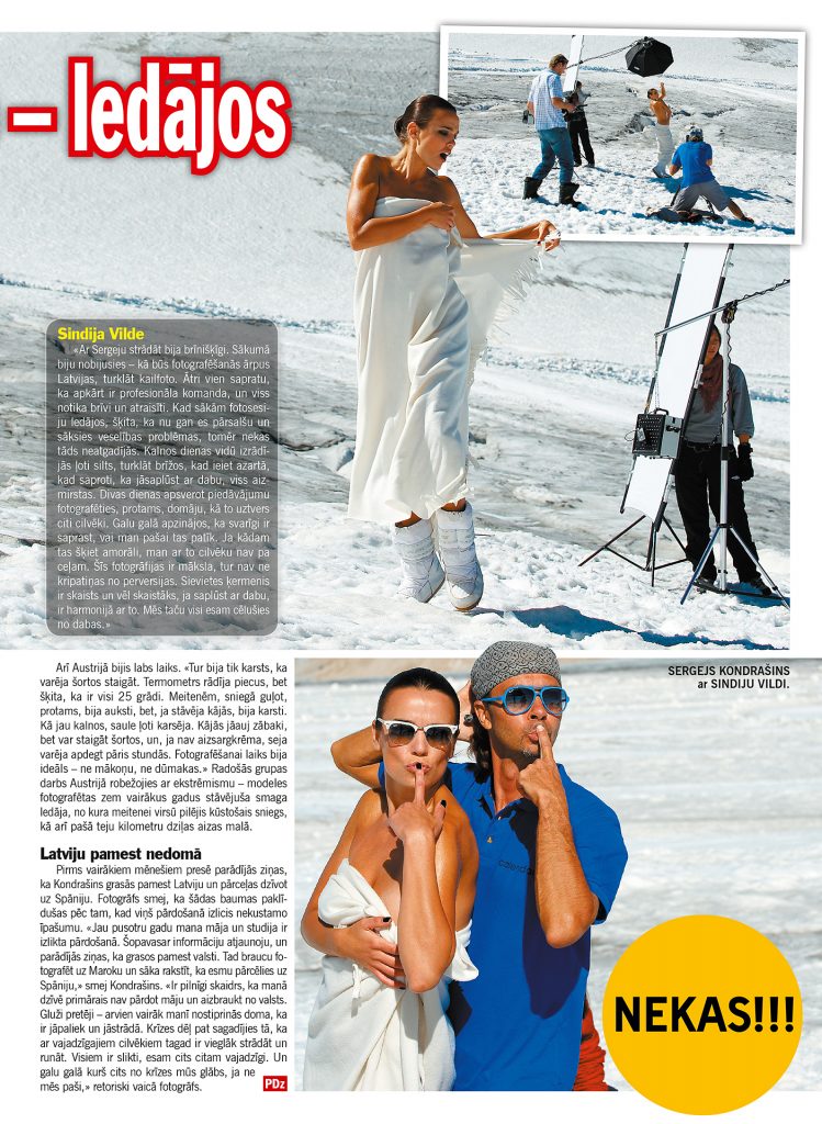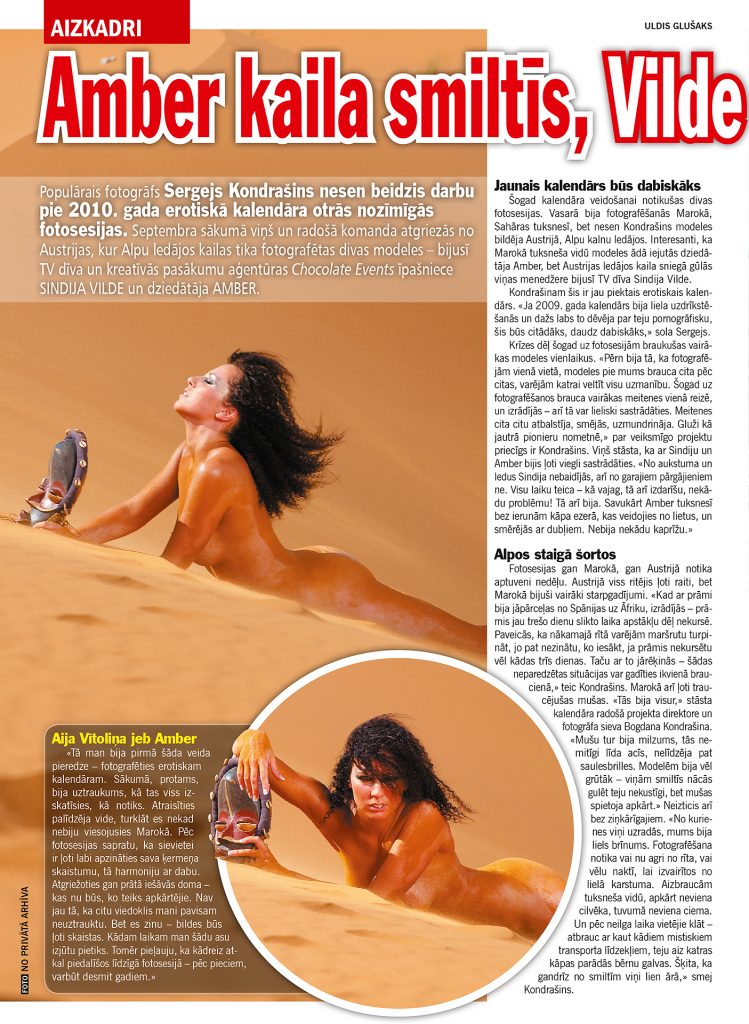 Populārais fotogrāfs Sergejs Kondrašins nesen beidzis darbu pie 2010. gada erotiskā kalendāra otrās nozīmīgās fotosesijas. Septembra sākumā viņš un radošā komanda atgriezās no Austrijas, kur Alpu ledājos kailas tika fotografētas divas modeles – bijusī TV dīva un kreatīvās pasākumu aģentūras Chocolate Events īpašniece Sindija Vilde un dziedātāja Amber.